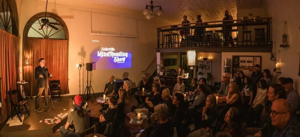 We are partnered with the Story Parlor of Asheville on 227 Haywood Road in west Asheville. It’s the perfect size for the show, and we love their mission of sharing the power of telling our stories.